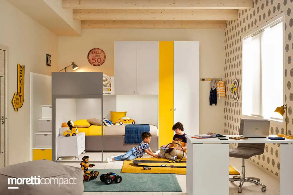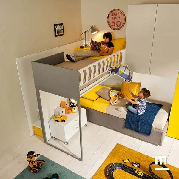 Среда, которая разумно трансформируется благодаря модульной мебели. Множество идеальных решений для объединения различных потребностей, например, потребностей двух братьев, которым приходится жить в одном пространстве. Мезонин Concept состоит из двух кроватей, шкафа и лестницы-контейнера, ведущей на верхнюю кровать. Лестница с переходом, расположенная сзади, обеспечивает большую свободу движений при уборке кровати.